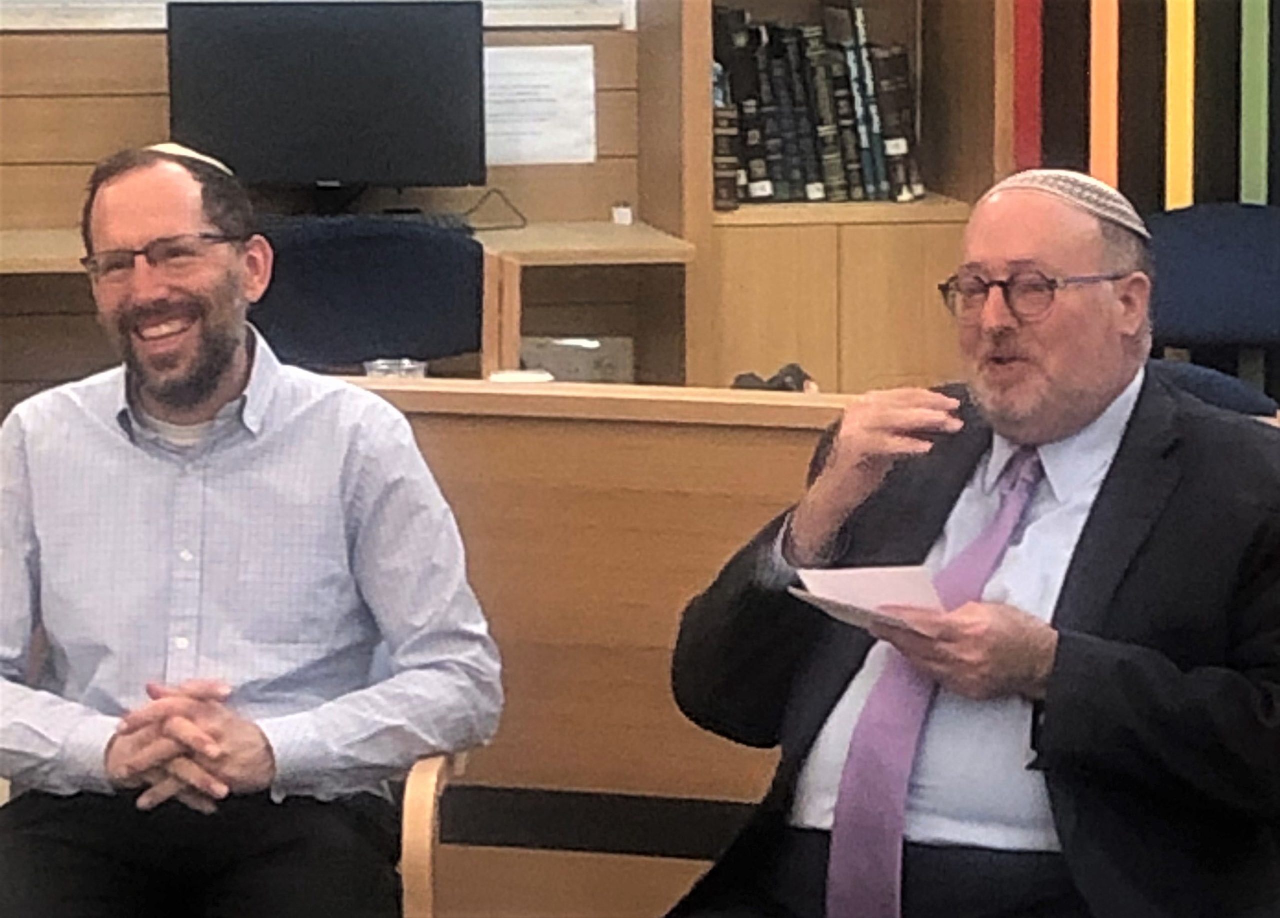 Rabbi Dr. Yakov Nagen (left), Director of the Blickle Institute and the Beit Midrash for Humanity; and Rabbi Dr. Kenneth Brander, President and Rosh HaYeshiva of Ohr Torah Stone